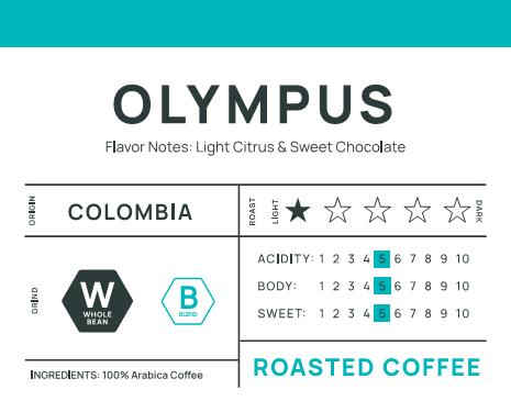 Our signature house blend—direct trade, specialty-grade Colombian coffee roasted light to preserve its caffeine level, clarity and natural sweetness. Bright notes of light citrus meet a smooth sweet-chocolate finish, creating a cup that is both vibrant and refined. Named after the legendary home of the Greek gods, Olympus represents the summit—strength, elevation, and excellence. It reflects who we are and the standard we hold in every roast: nothing less than the peak.