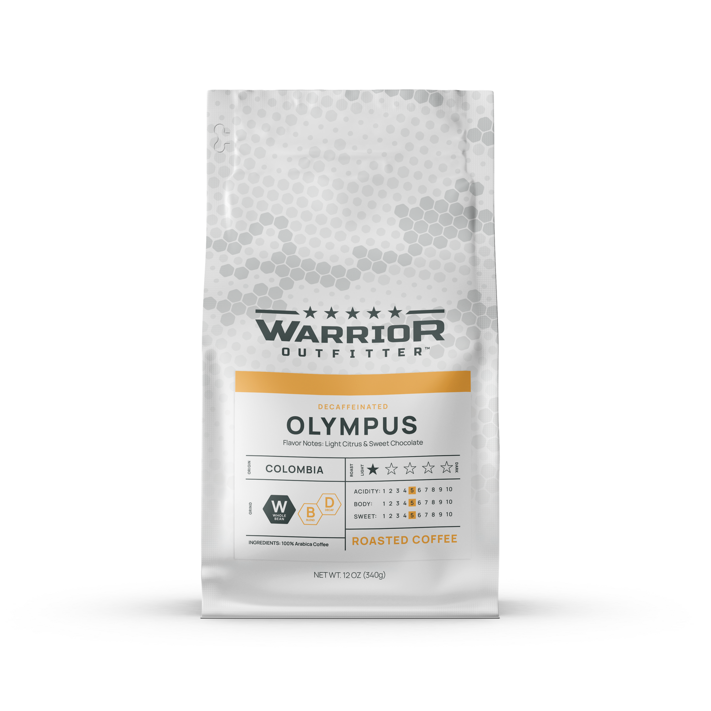 All the flavor of the original Olympus — using decaffeinated Colombian beans with naturally clean, consistent taste. Light roast clarity without bitterness, perfect for all‑day or evening enjoyment.